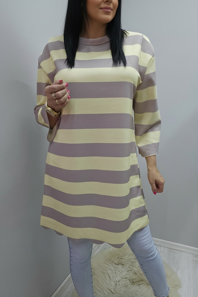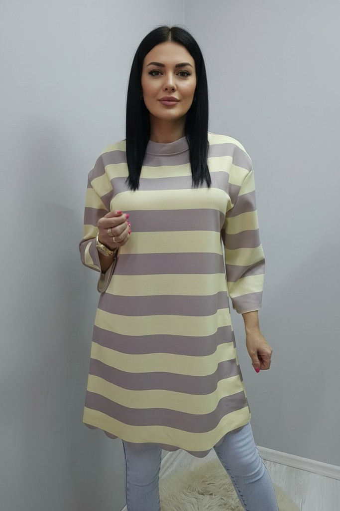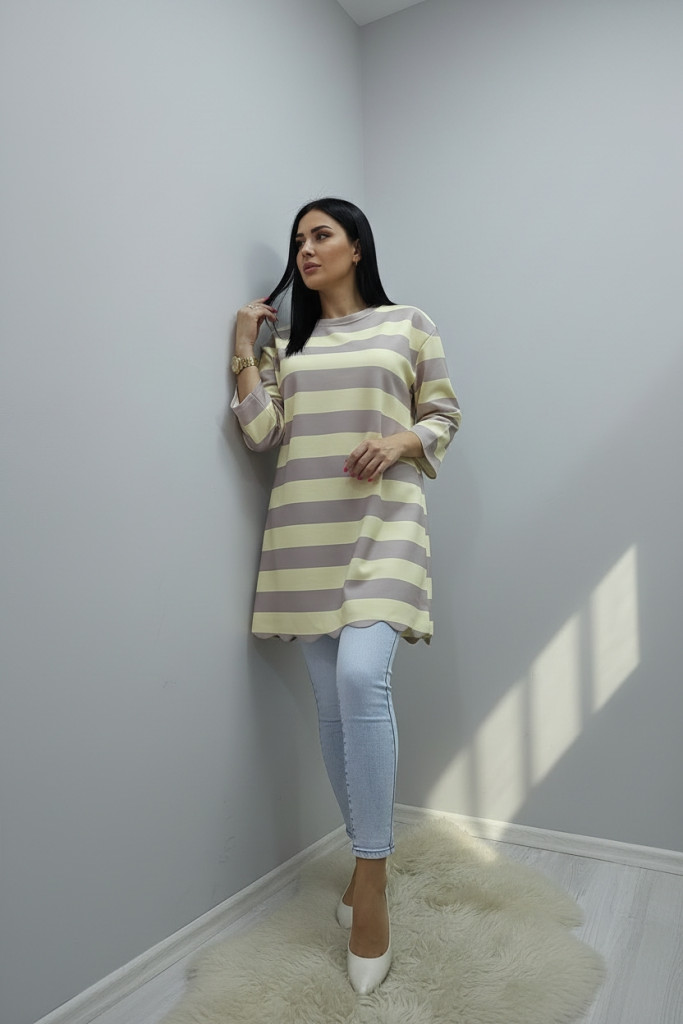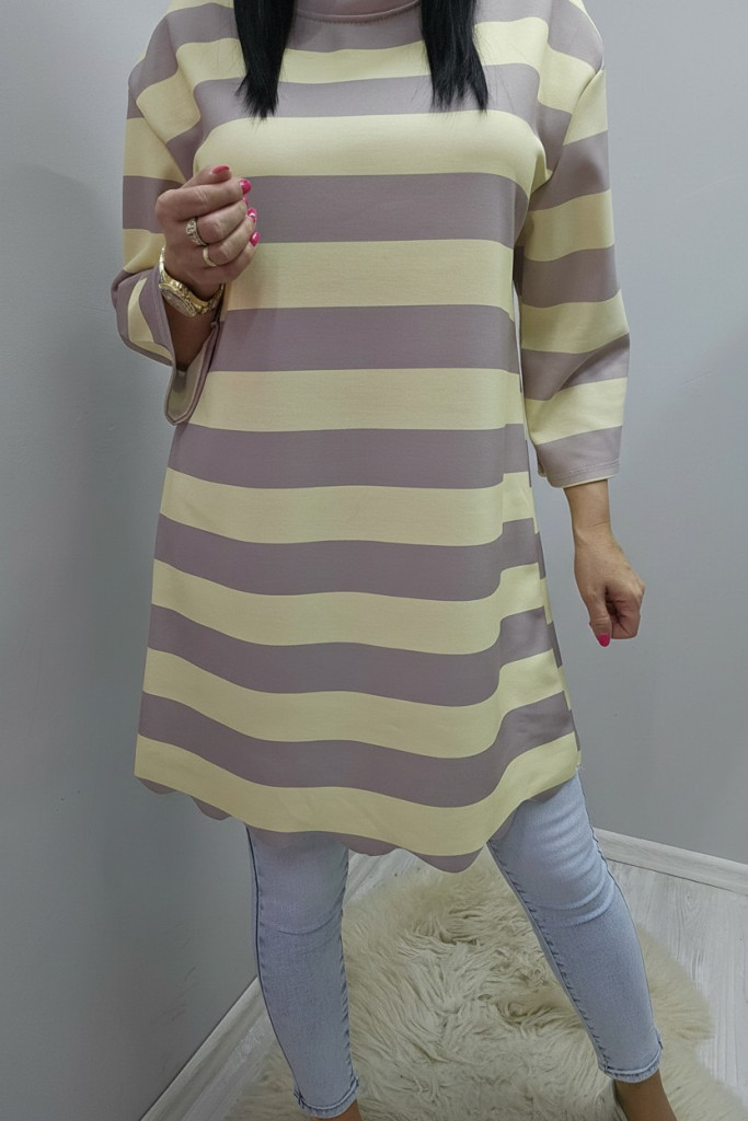 Csíkos alján hullám mintás tunika (sárga-capuccino)