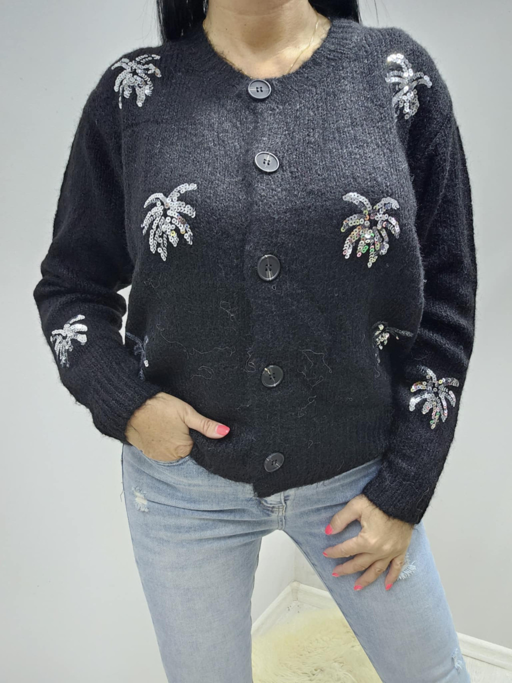 Csinos flitteres díszítésű gombos kardigán(fekete)