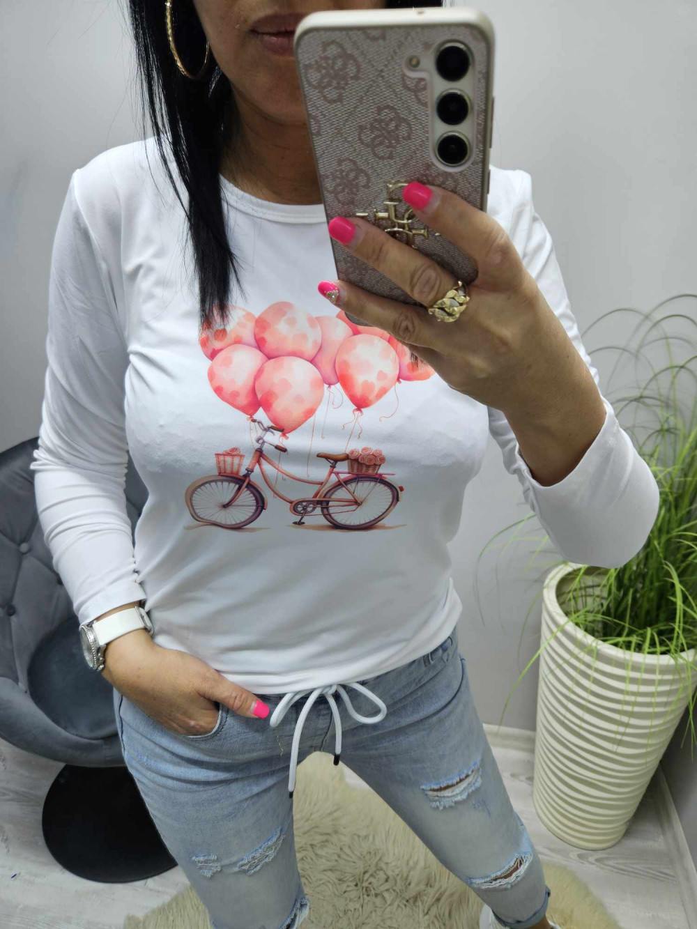 Csinos kerékpár lufival mintás hosszú ujjú felső