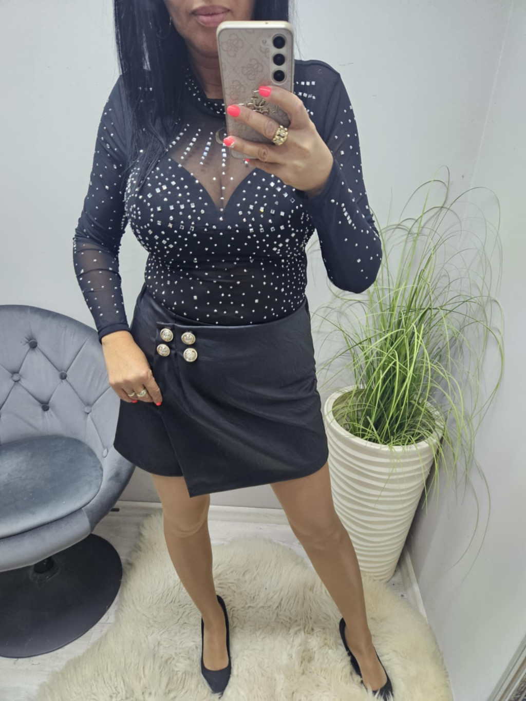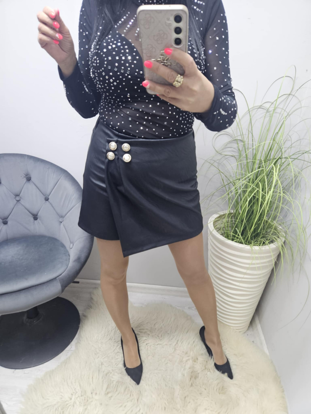 M méret: hossza: 38 cm, derék: 60-74 cm, csípő: 94 cm, ülep: 32 cm