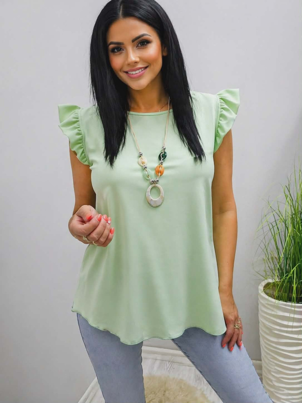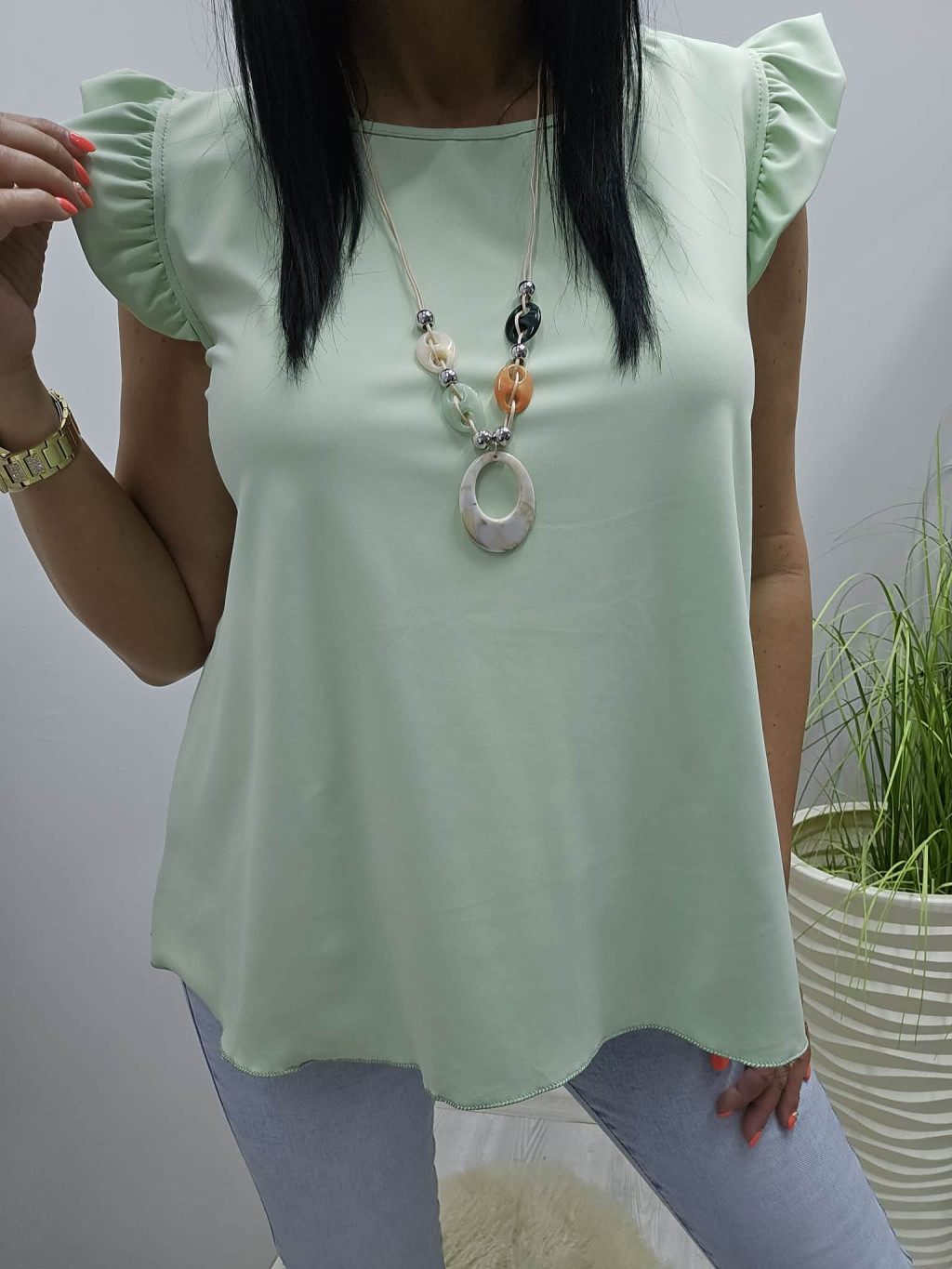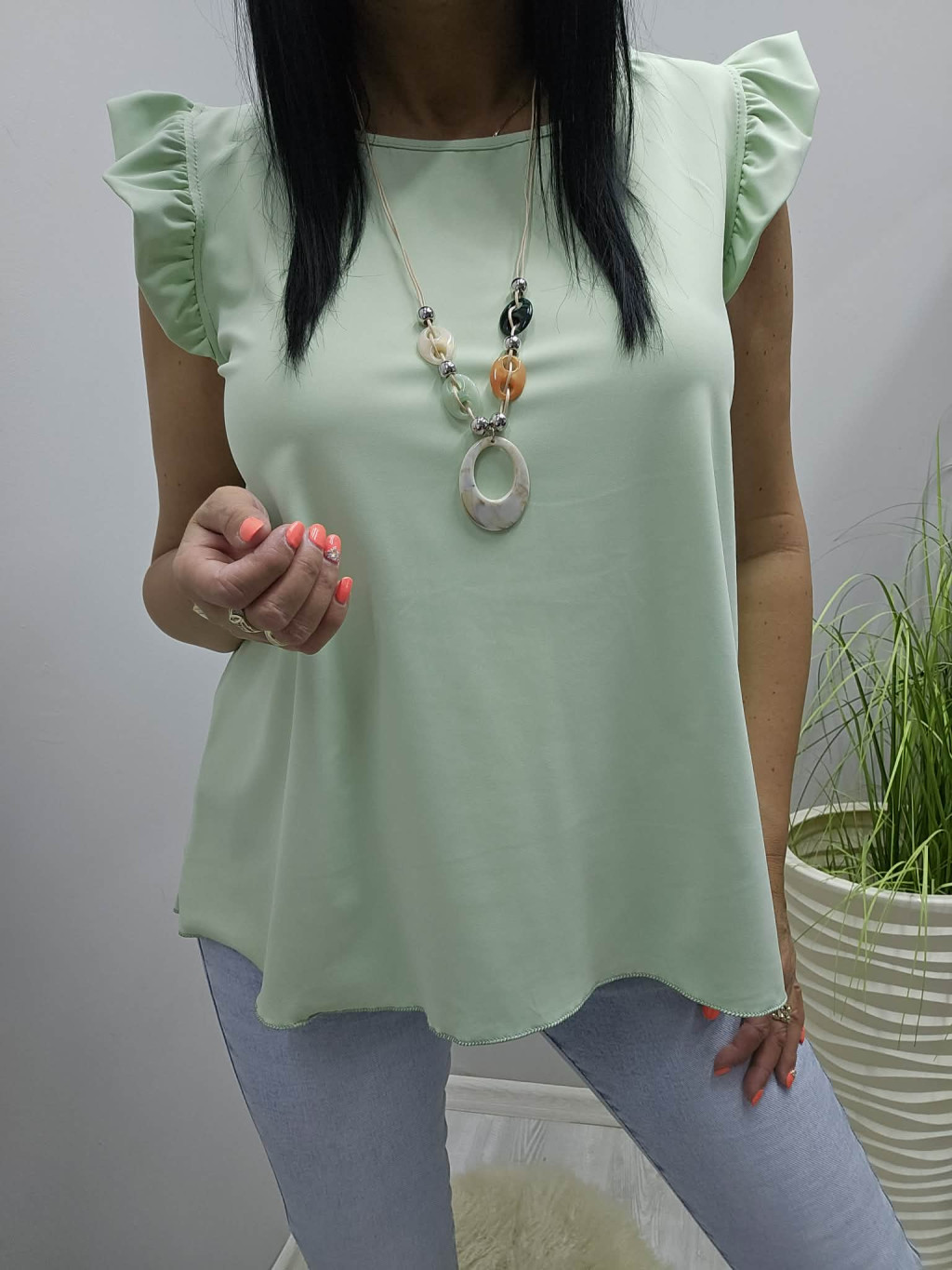 Csinos vállán fodros felső nyaklánccal (almazöld)