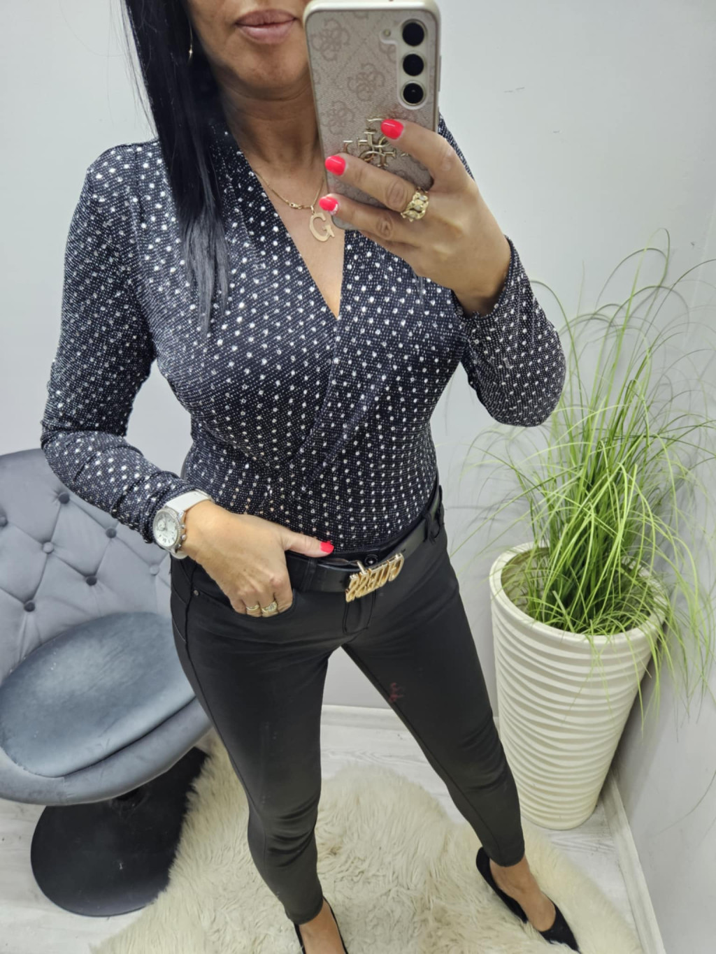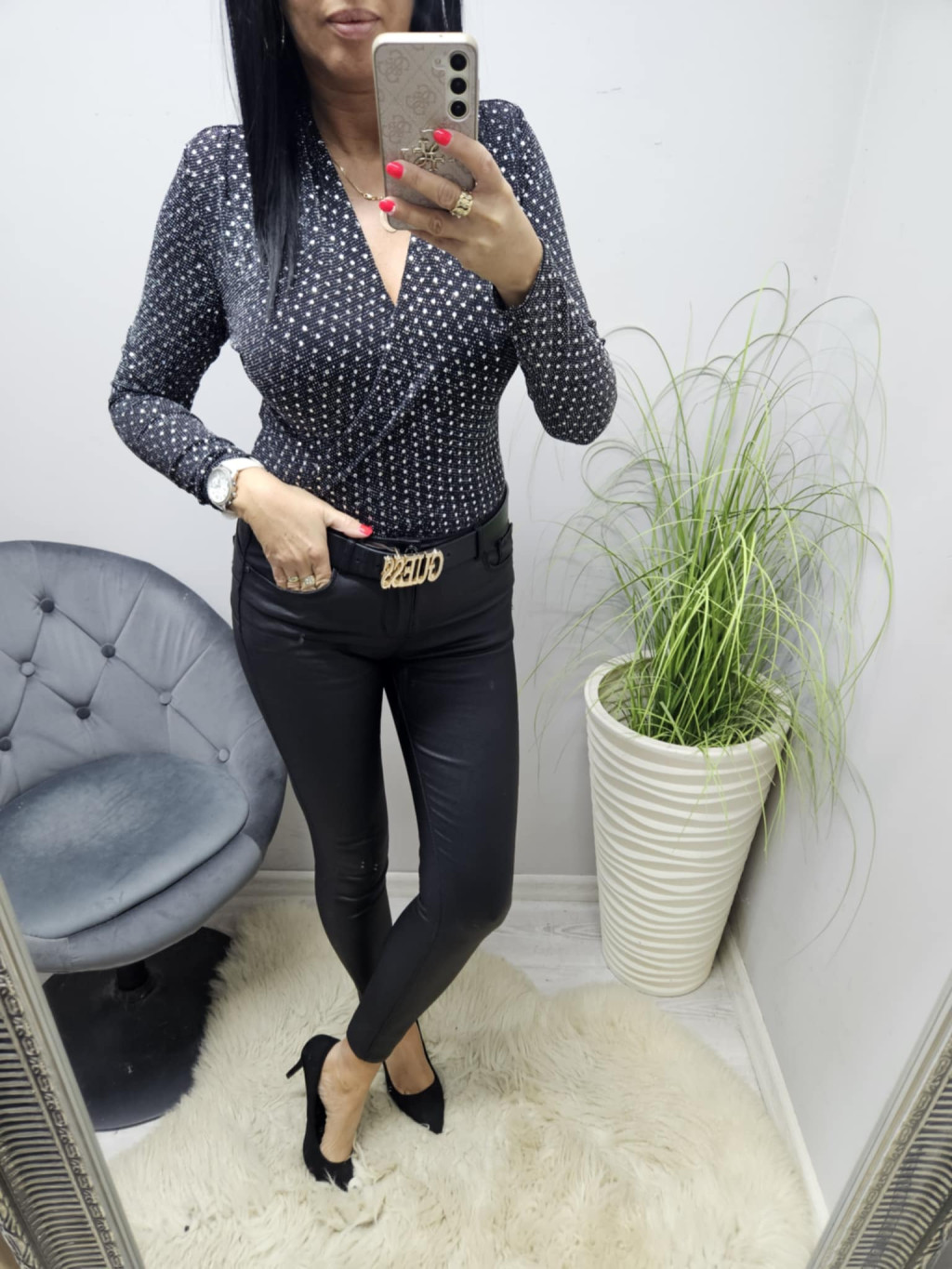 Gyönyörű átlapolt csillogós flitteres elegáns body (ezüst-fekete)