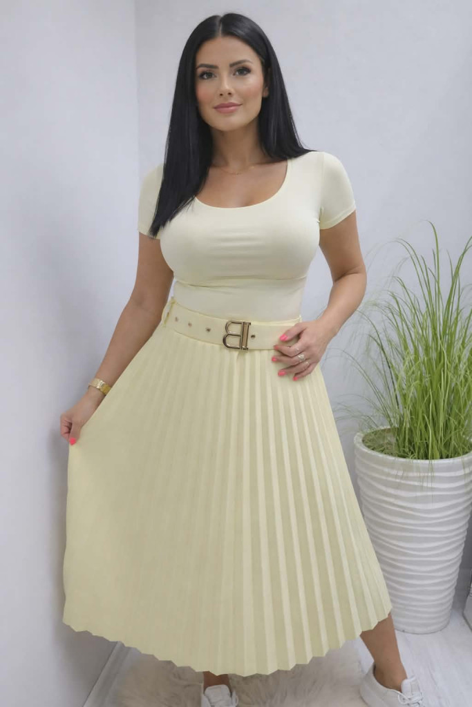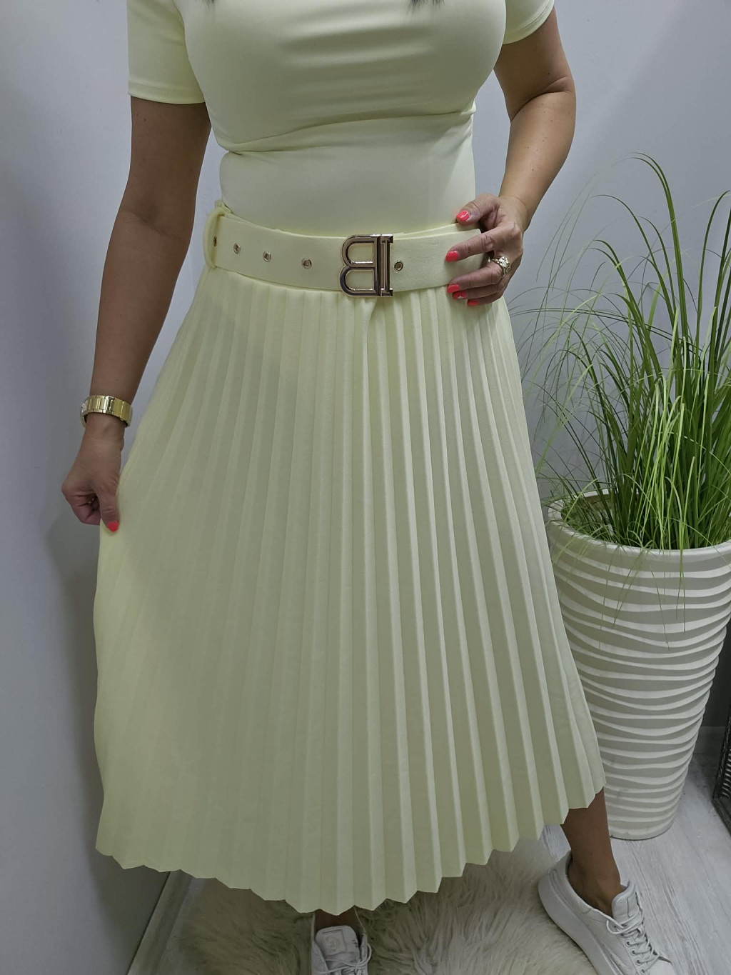 Gyönyörű pliszírozott szoknya övvel (sárga)