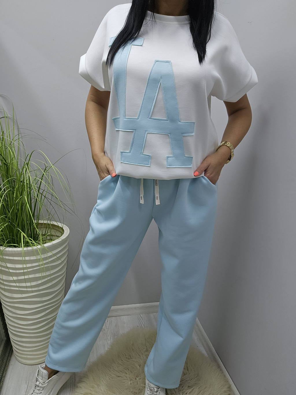 Gyönyörű puha anyagú prémium kétrészes szett (babakék)