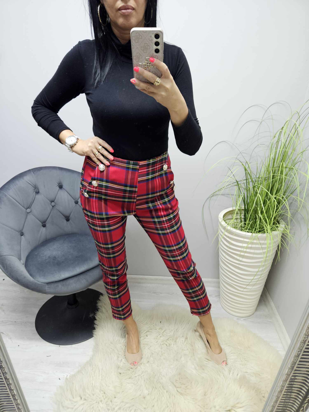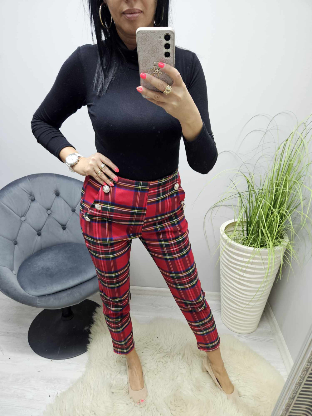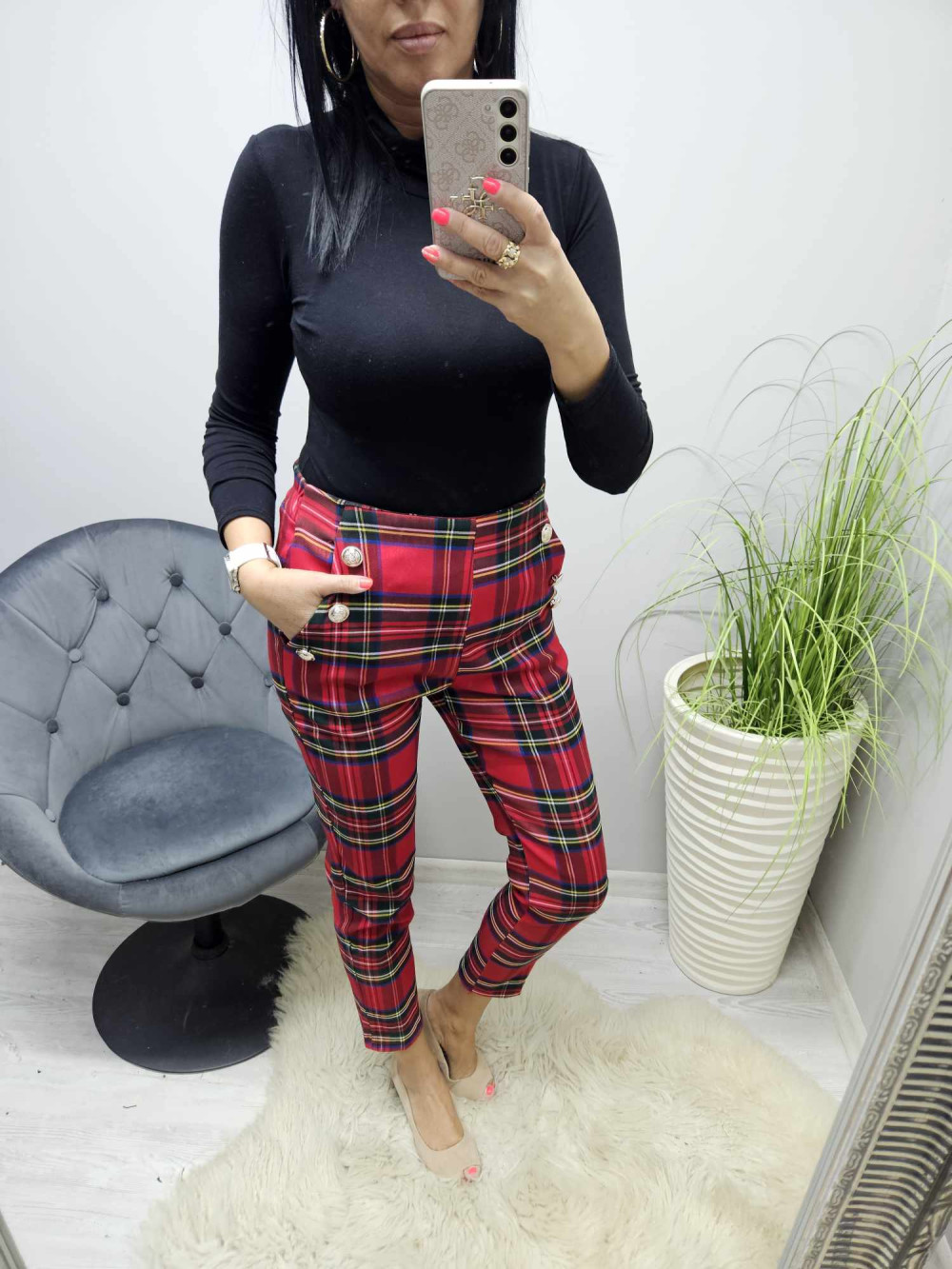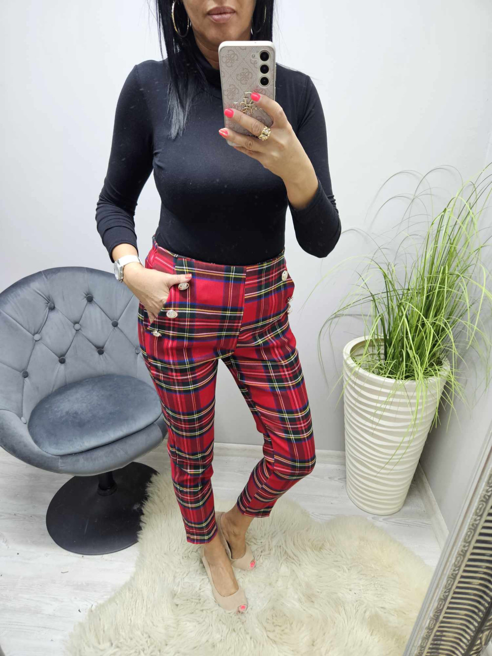 Nagyon csinos kockás nadrág zsebénél gombdíszítéssel