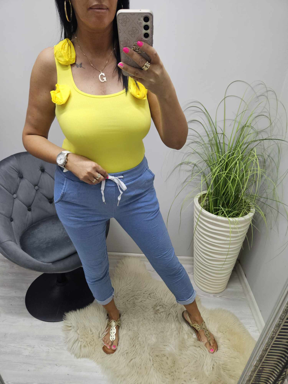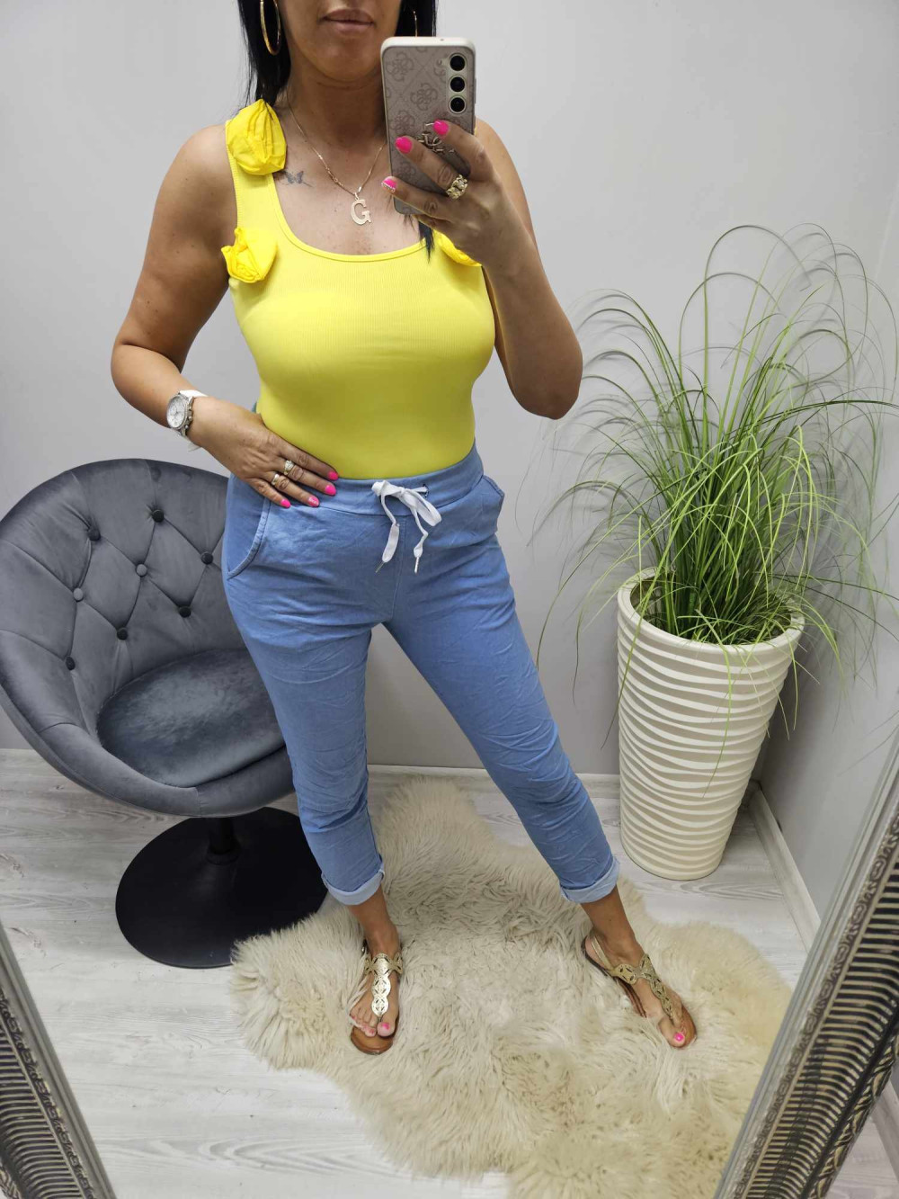 hossza: 54 cmmellbőség: 78 cmderékbőség: 64 cmcsípőbőség: 70 cmAnyaga: 97% poliészter. 3% elasztánMosás kézzel max 30 fokon!Szárítógépben szárítani tilos!