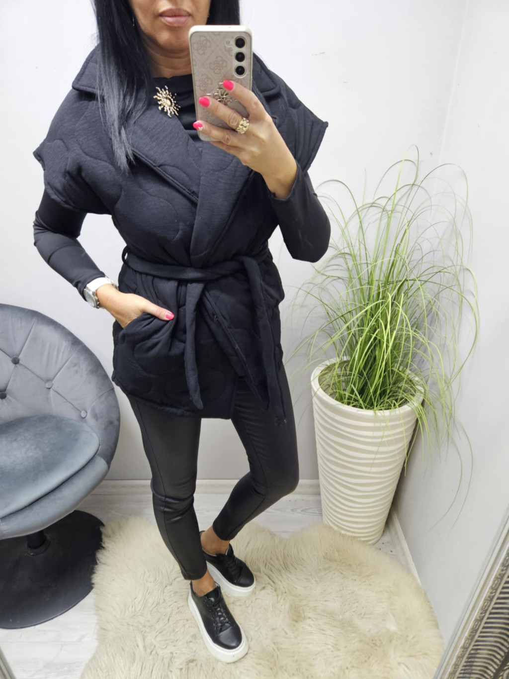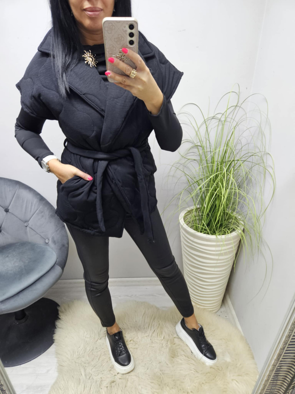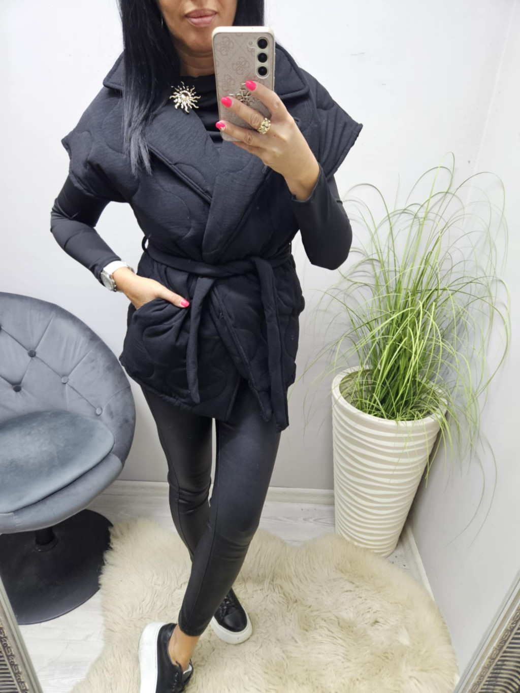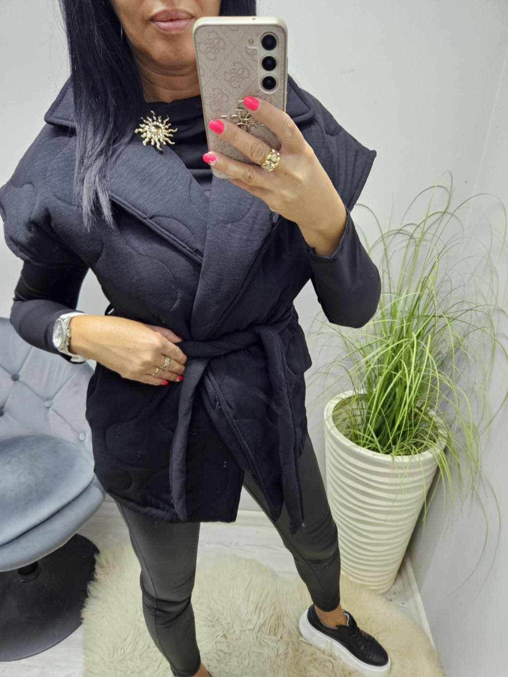 Vastagabb steppelt hatású öves mellény (fekete)