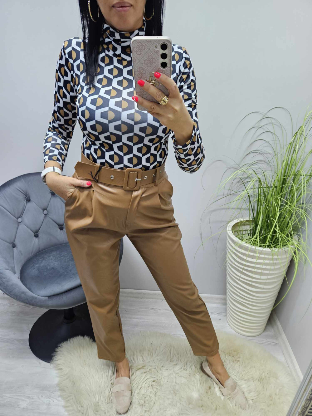 L méret: hossza: 101 cm, derékbőség: 74 cm, csípőbőség: 104 cm, ülepe: 34 cm
