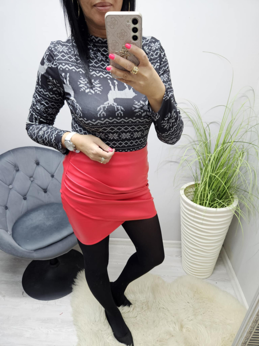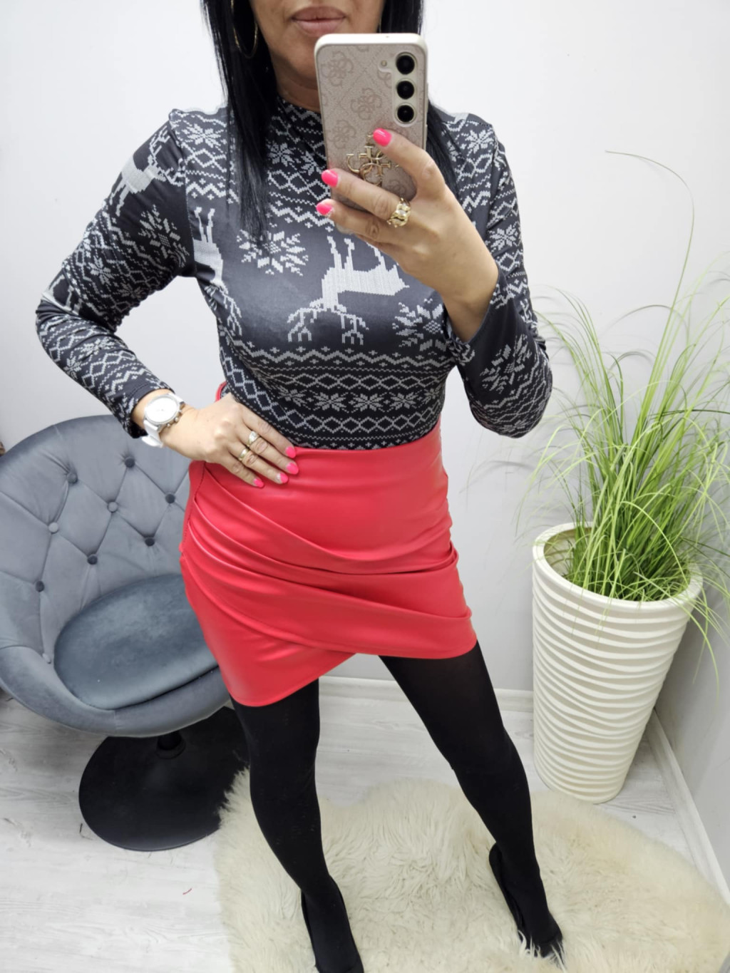 Csinos fekete alapon rénszarvas mintás karácsonyi felső