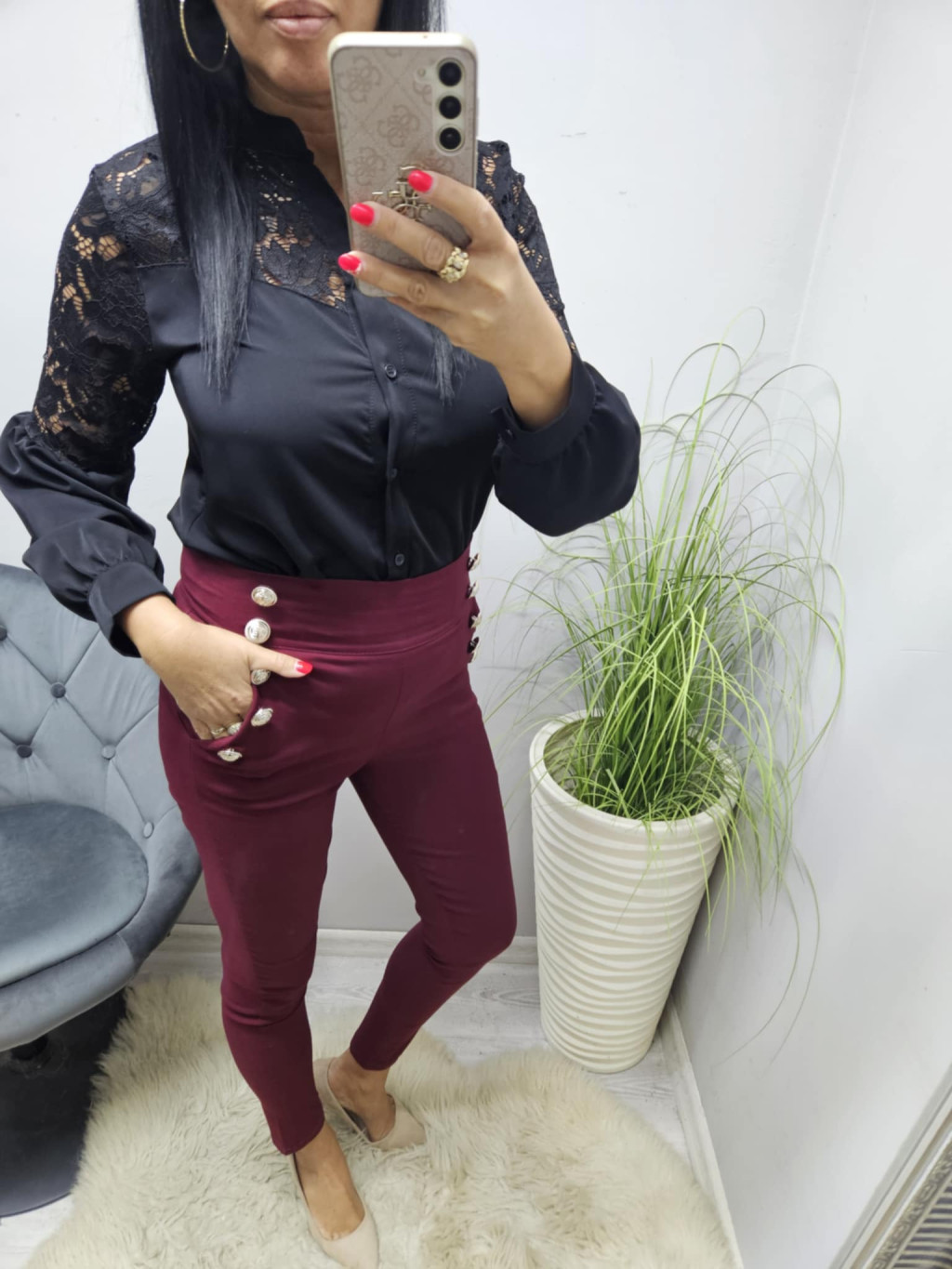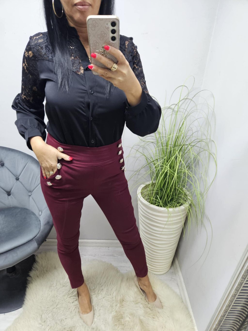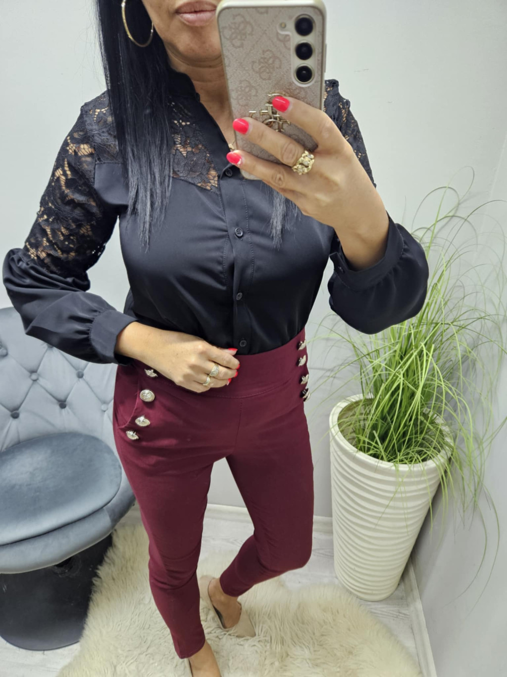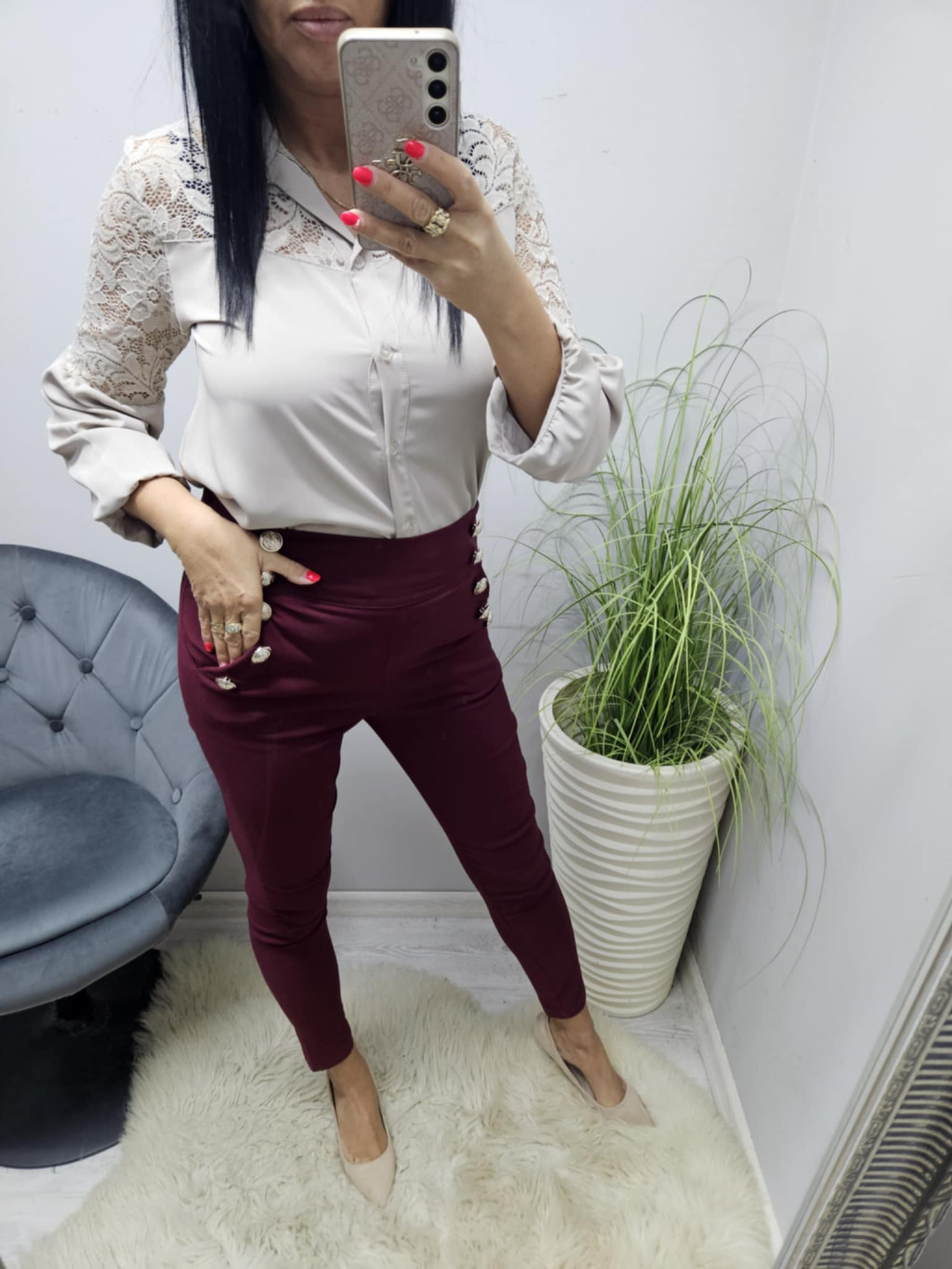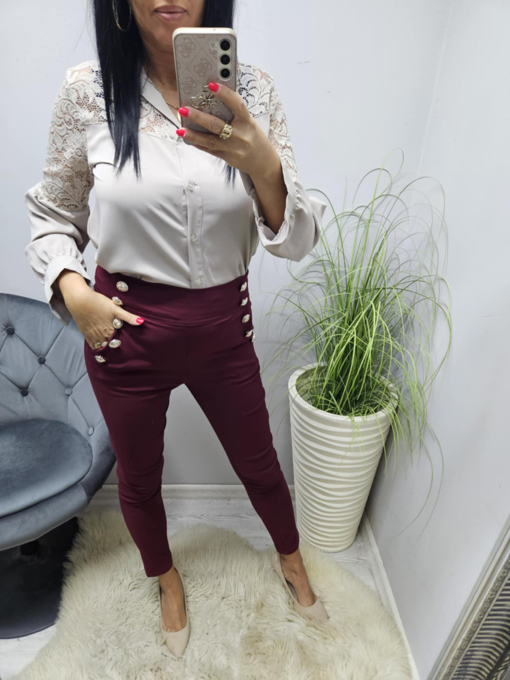 L méret: hossza: 99 cm, derék: 72-92 cm, csípő: 82 cm, ülepe: 33 cm