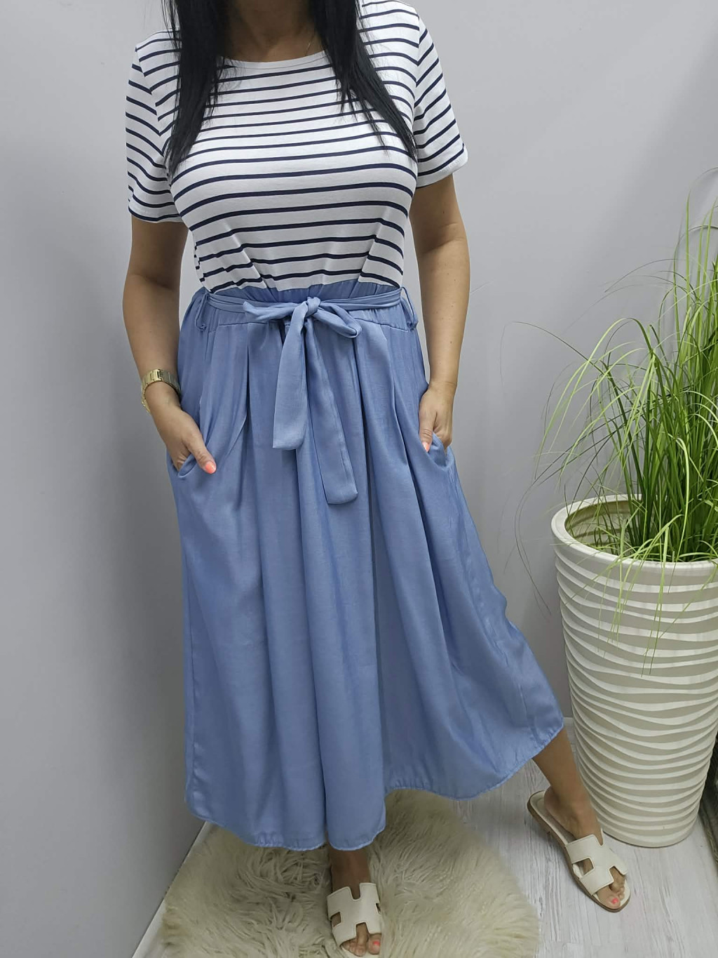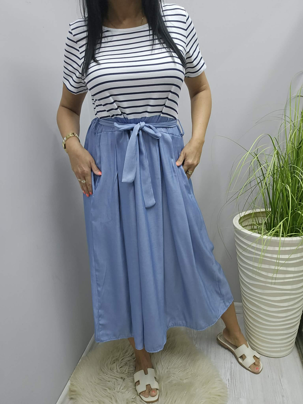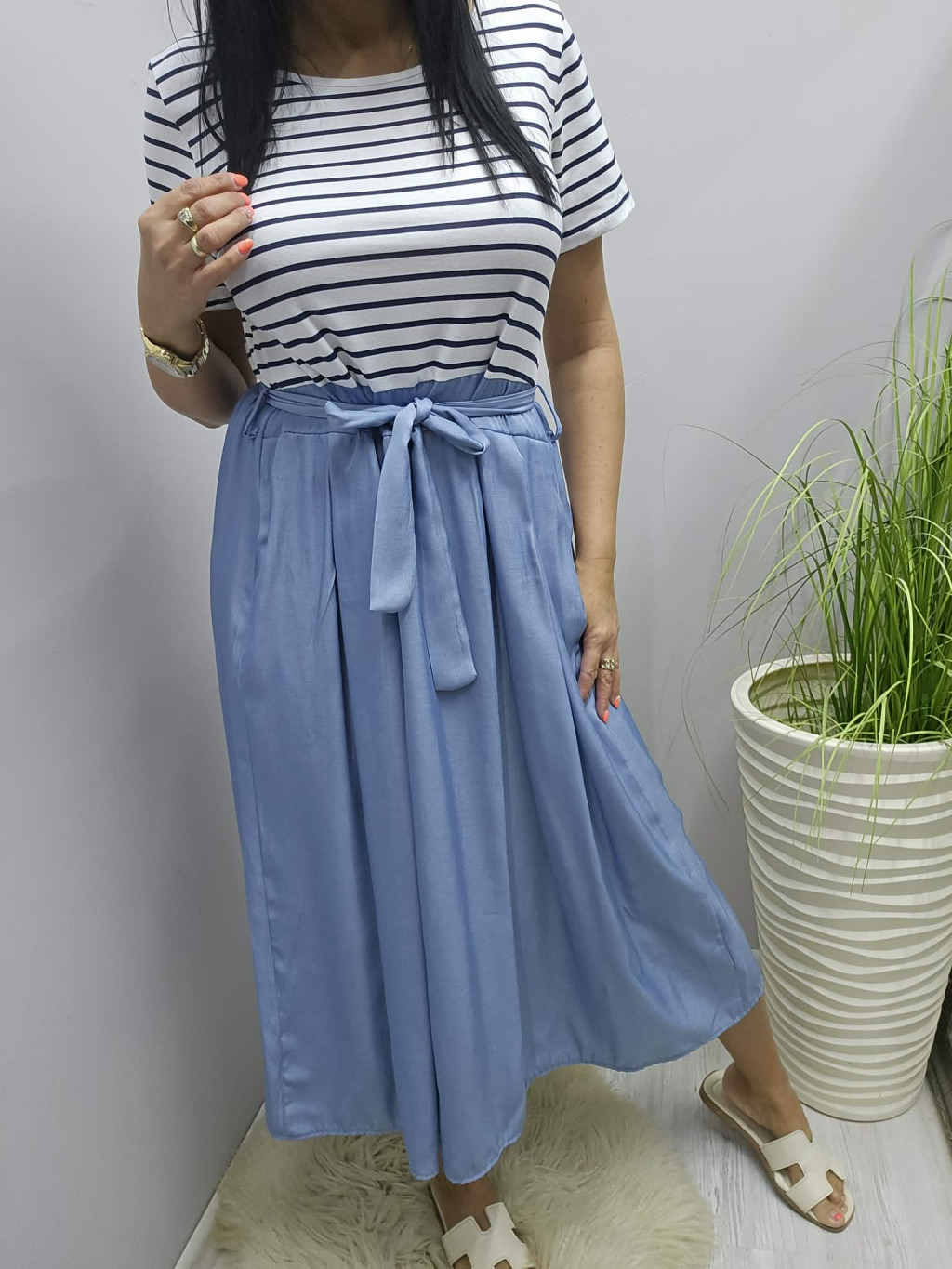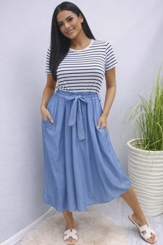 Csinos felső részén csíkos alján farmer hatású ruha derekán megkötővel (2)